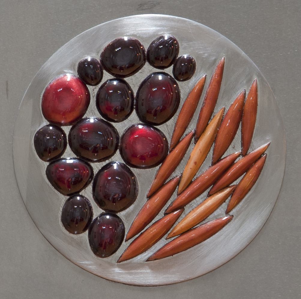 Peça cravada no Sacrário, simbolizando o Pão e o Vinho